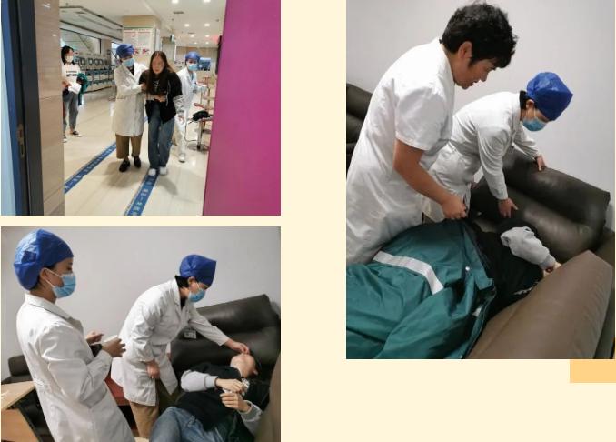 隨后崔愛麗和侯紅瑞一起把病人攙扶到檢驗(yàn)科休息室,讓病人平躺在沙發(fā)上,隨時(shí)查看病人情況,并再次親切地安慰道:“你今天是來做什么檢查?現(xiàn)在感覺怎么樣了?”