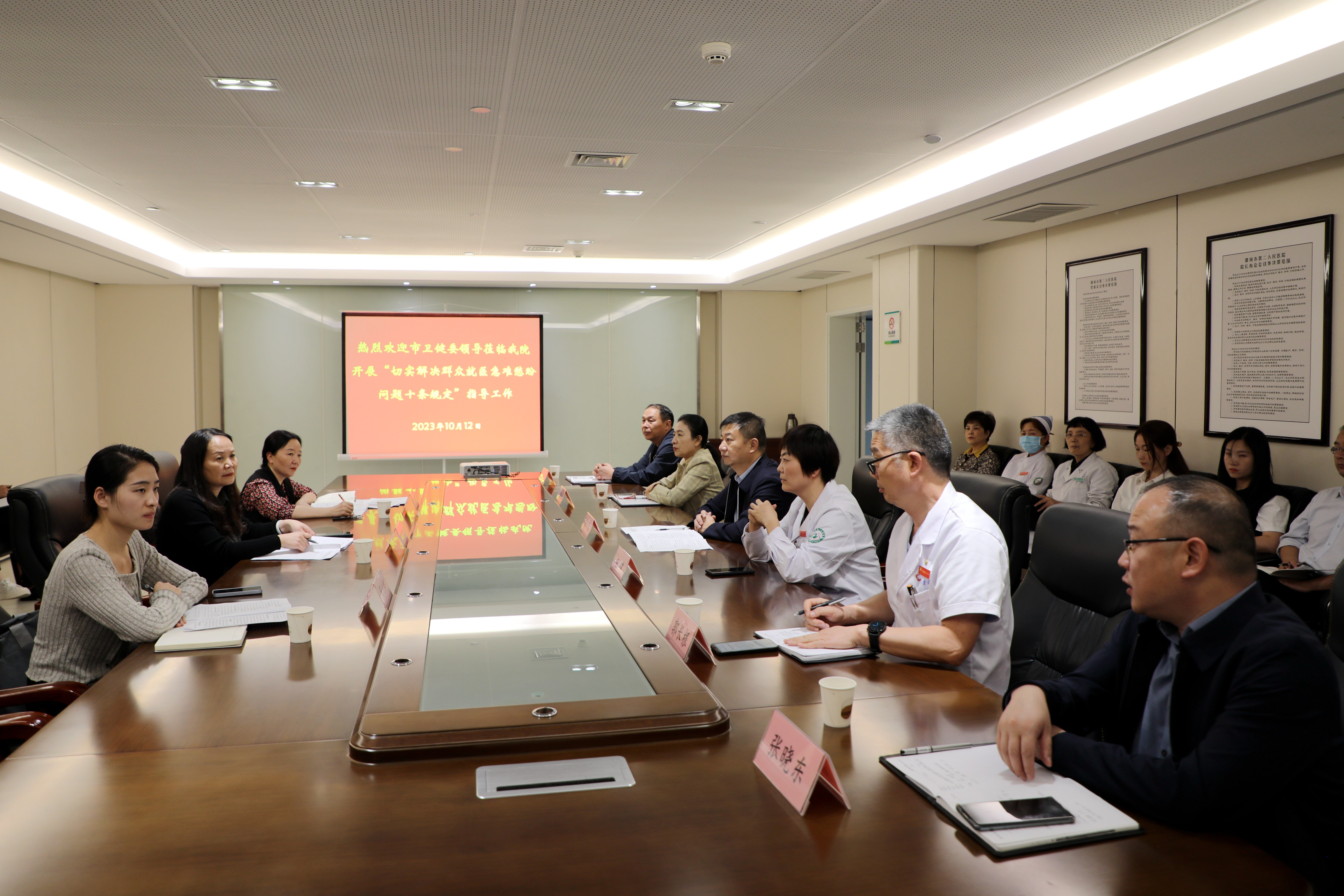 10月12日下午,市衛(wèi)健委評估檢查組蒞臨市二院就開展“切實解決群眾就醫(yī)急難愁盼問題十條規(guī)定”落實情況進行了評估評價。黨委書記魏松、院長王瑾及其他領導班子成員、相關職能部門迎接了本次評估評價。