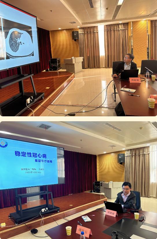 沙龍活動現(xiàn)場,主要采取學(xué)術(shù)講座與現(xiàn)場討論交流形式進(jìn)行。呼吸內(nèi)科周敬奎主任,共產(chǎn)黨員、沈昊昊主治醫(yī)師,心血管內(nèi)科二病區(qū)馬彥輝副主任醫(yī)師分別就《肺栓塞的規(guī)范診治》《高血壓心臟病的規(guī)范診治》《穩(wěn)定性冠心病基層診療指南》進(jìn)行精彩分享。講課結(jié)束后各位專家結(jié)合自身臨床經(jīng)驗及個人專業(yè)特點(diǎn),圍繞具體病例進(jìn)行學(xué)術(shù)討論,進(jìn)一步提高了醫(yī)聯(lián)體基層醫(yī)務(wù)人員的理論知識,參會人員紛紛表示受益匪淺。