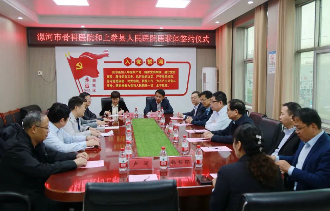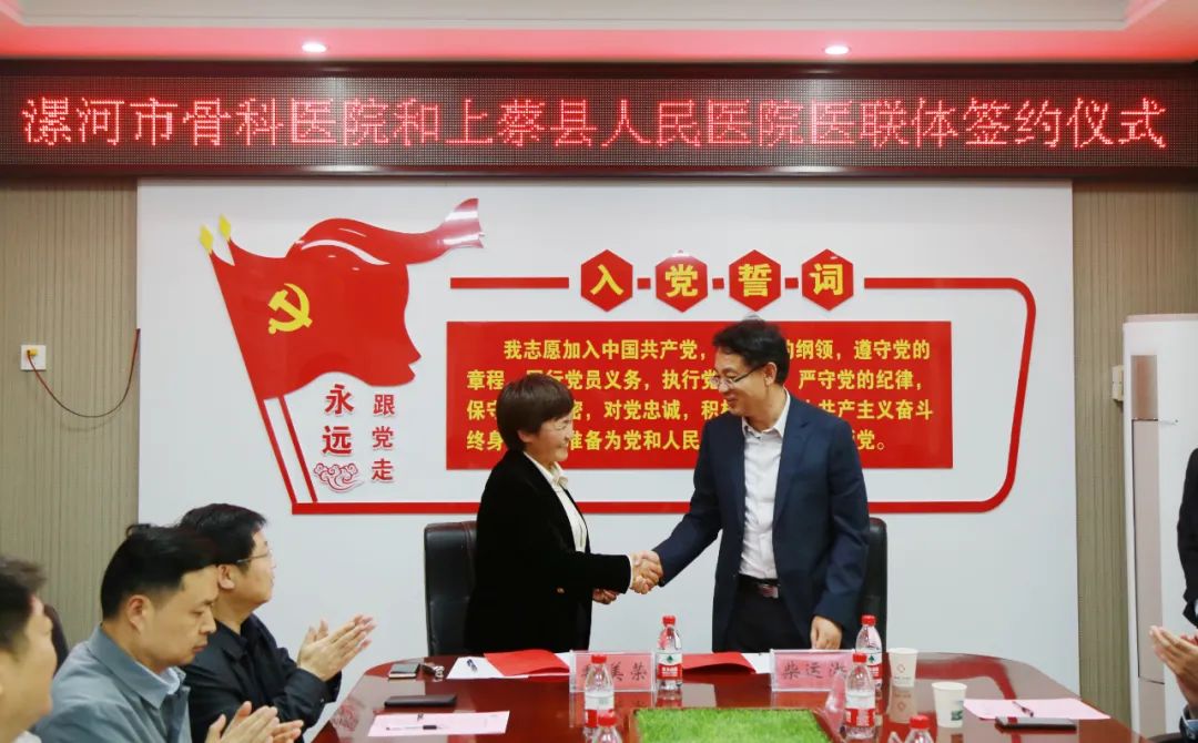 為全面貫徹落實國家醫(yī)藥衛(wèi)生體制改革精神,推進分級診療制度建立,加快構(gòu)建優(yōu)質(zhì)高效的醫(yī)療衛(wèi)生服務體系,提升基層醫(yī)療衛(wèi)生機構(gòu)服務能力,10月19日,市骨科醫(yī)院(漯河醫(yī)專二附院)與上蔡縣人民醫(yī)院簽訂醫(yī)聯(lián)體合作協(xié)議。市骨科醫(yī)院領(lǐng)導柴運洪、李奎、欒豐年、吳廣良,上蔡縣人民醫(yī)院領(lǐng)導魏美榮、李國選、聶鑫磊、李二民參加簽約儀式。