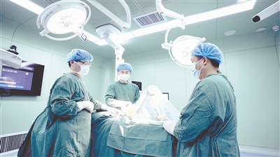 該院智能微創(chuàng)骨科(骨十科)宛磊團隊用“天璣”手術(shù)機器人為患者進行手術(shù)定位。市骨科醫(yī)院提供
