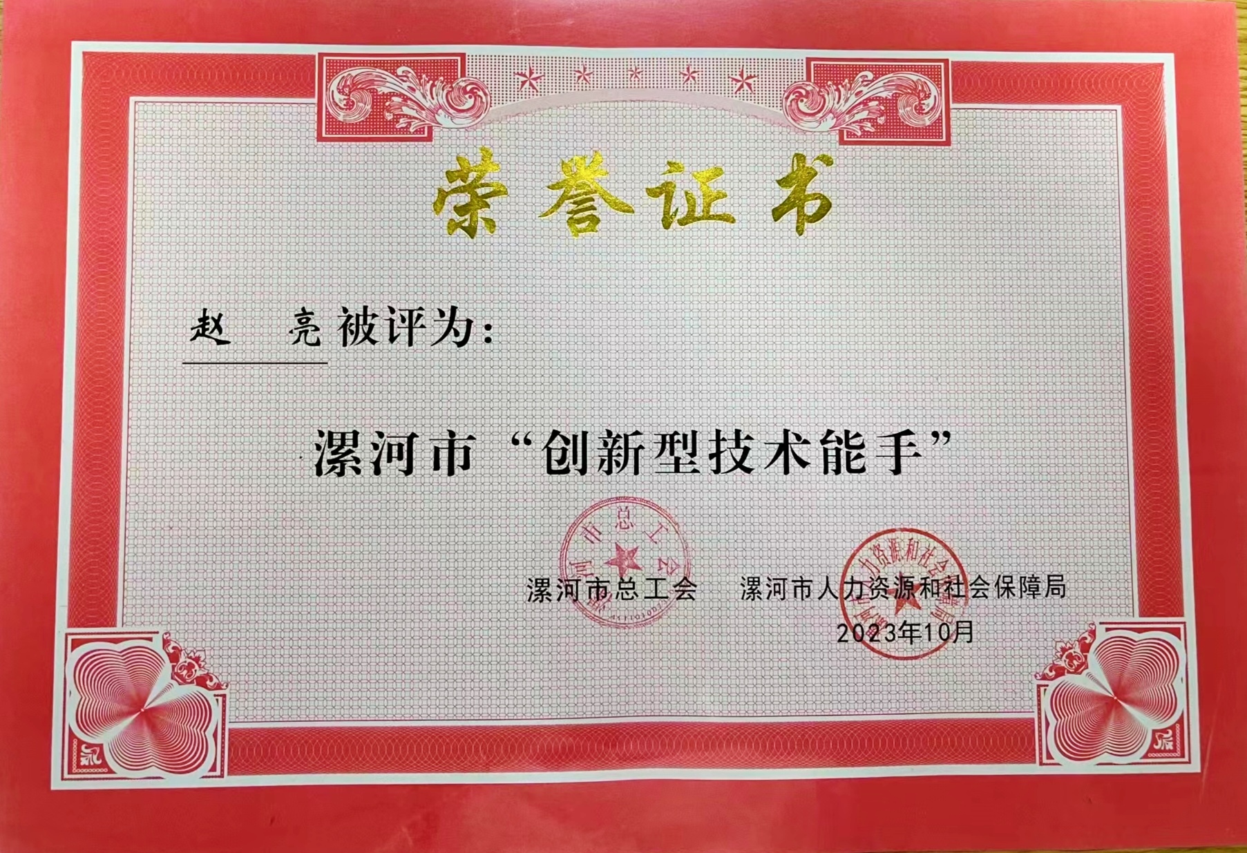 近日,漯河市人力資源局和社會保障局、漯河市總工會聯(lián)合印發(fā)《關(guān)于命名漯河市“創(chuàng)新型技術(shù)能手”的決定》(漯工文[2023]51號),經(jīng)過基層推薦、專家評審,全市10名同志受到表彰,其中市二院放療科副主任趙亮榮獲漯河市“創(chuàng)新型技術(shù)能手”稱號。