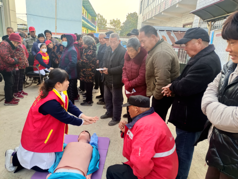 當(dāng)天早上七時(shí)十分,來(lái)自該院內(nèi)科、外科、骨科、急診科、兒科、社工部等專業(yè)的醫(yī)療專家、黨員志愿者們出發(fā)來(lái)到召陵區(qū)鄧襄鎮(zhèn)尚莊村開(kāi)啟大型義診活動(dòng)。義診現(xiàn)場(chǎng),共產(chǎn)黨員、肛腸科主任賈彥超,兒科主任醫(yī)師孟平英,共產(chǎn)黨員、普外科副主任醫(yī)師劉永輝,胸外科副主任醫(yī)師許海偉,心內(nèi)科主治醫(yī)師劉曉丹,骨科醫(yī)師泮學(xué)貞等專家志愿者為村民免費(fèi)測(cè)血壓、手指血糖、做心電圖、骨密度檢測(cè)、甲狀腺彩超、碳呼吸試驗(yàn)、體格檢查、疾病診斷,并為村民進(jìn)行用藥指導(dǎo)、健康咨詢,發(fā)放健康教育手冊(cè)等。此外,共產(chǎn)黨員、社工部主任韓書環(huán)現(xiàn)場(chǎng)通過(guò)人體模型向村民講解心肺復(fù)蘇的操作手法,并邀請(qǐng)觀摩的村民現(xiàn)場(chǎng)操作演練,指出心肺復(fù)蘇操作過(guò)程中需要注意的問(wèn)題。