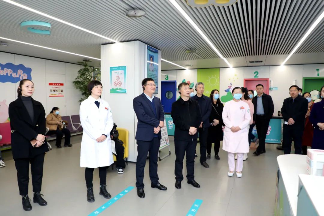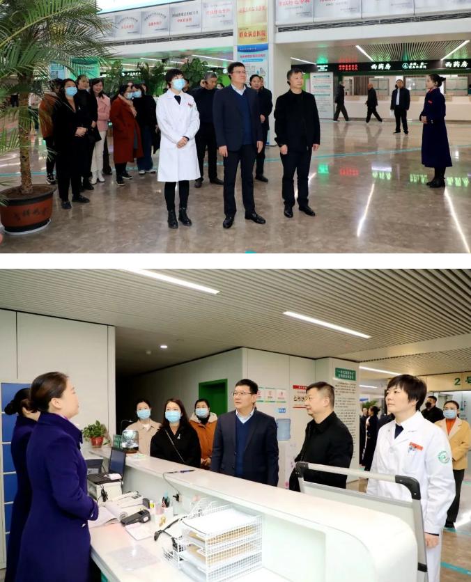 王東升書記一行先后觀摩了一樓大廳黨建引領(lǐng)醫(yī)院高質(zhì)量發(fā)展相關(guān)展板,和醫(yī)保一站式結(jié)算中心、病人一站式服務(wù)中心、市兒童醫(yī)療中心等點(diǎn)位,聽取相關(guān)介紹,詳細(xì)了解了市二院在落實“改善就醫(yī)感受 提升患者體驗”六聚焦六提升行動、“便民就醫(yī)少跑腿”七大舉措、清廉醫(yī)院建設(shè),以及今年以來靠大聯(lián)大通過與鄭大一附院強(qiáng)強(qiáng)聯(lián)合促進(jìn)多學(xué)科快速發(fā)展等方面的相關(guān)經(jīng)驗和亮點(diǎn)做法,對市二院近年來高質(zhì)量發(fā)展所取得的成績給予充分認(rèn)可,對全院干部職工凝心聚力干事業(yè)、奮楫前行謀發(fā)展的精氣神給予了高度評價。