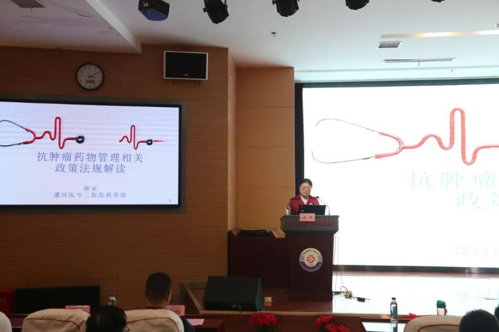 該院藥學(xué)部主任耿亞圍繞我國(guó)抗腫瘤藥物管理的歷史沿革、《新型抗腫瘤藥物臨床應(yīng)用指導(dǎo)原則》及《抗腫瘤藥物臨床應(yīng)用管理辦法》試行版要點(diǎn)解讀、該院抗腫瘤藥物管理情況等方面給大家作了詳細(xì)講解。她說(shuō),抗腫瘤藥物的應(yīng)用涉及臨床多個(gè)學(xué)科,合理應(yīng)用抗腫瘤藥物是提高療效、降低不良反應(yīng)發(fā)生率以及合理利用衛(wèi)生資源的關(guān)鍵。