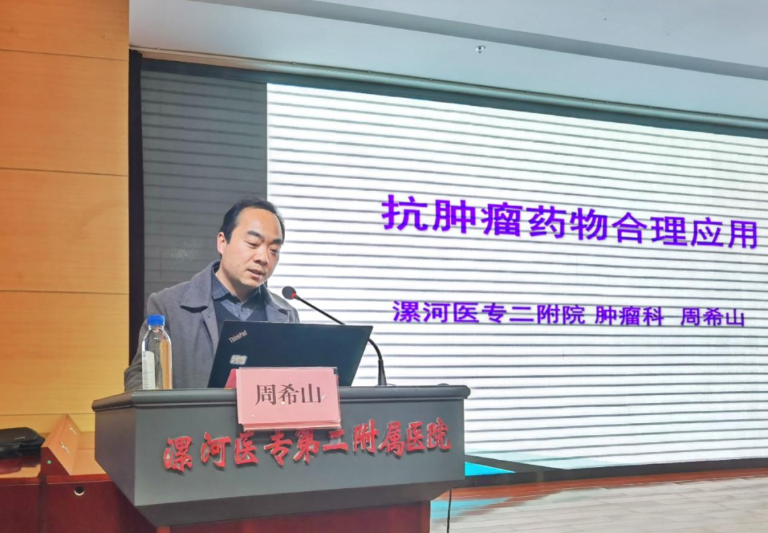 該院腫瘤血液科主任周希山主要從抗腫瘤藥物概述、循證醫(yī)學(xué)與抗腫瘤藥物應(yīng)用及癌癥鎮(zhèn)痛藥物的合理使用等方面闡述抗腫瘤藥物的臨床合理使用。通過(guò)周希山的講解,與會(huì)人員更清楚了常用抗腫瘤藥物的分類、腫瘤合理用藥的一般原則與策略,明確了抗腫瘤藥物給藥劑量、給藥途徑和給藥間隔的選擇依據(jù)。周希山也對(duì)癌痛患者疼痛治療方案的基本原則進(jìn)行詳細(xì)闡述,讓大家了解到慢性疼痛治療的新理念。