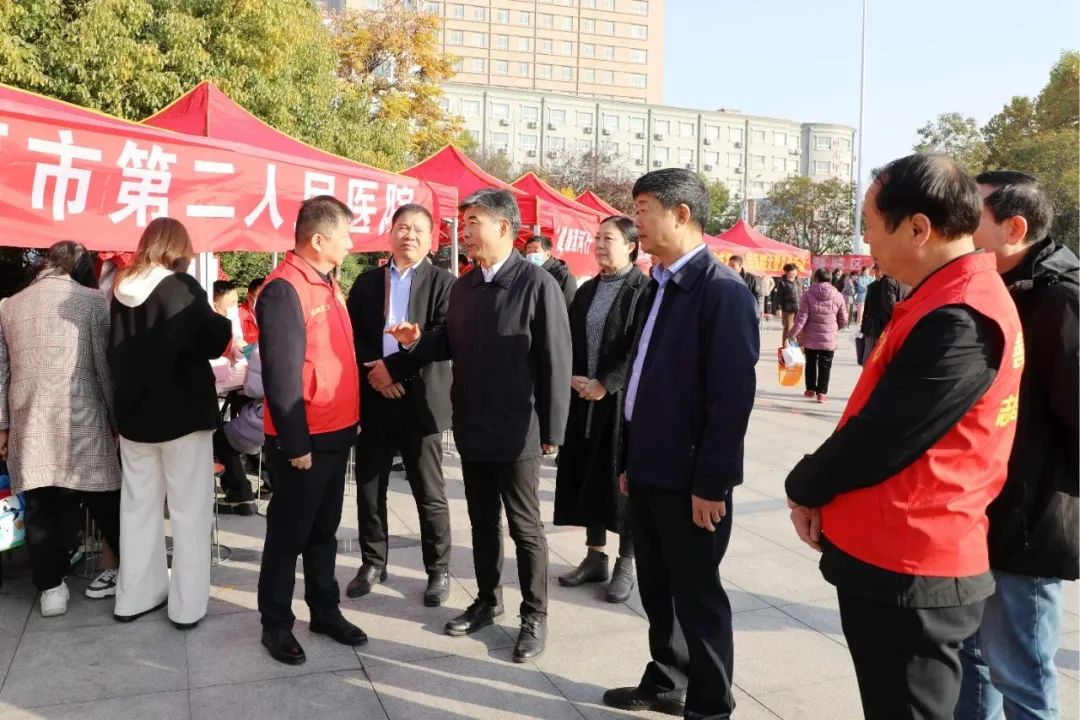 為深入貫徹落實(shí)黨的二十大精神,助力鄉(xiāng)村振興和文明漯河、健康漯河建設(shè),11月28日上午,“健康漯河行·大醫(yī)獻(xiàn)愛心”鄉(xiāng)村振興志愿服務(wù)專項(xiàng)行動(dòng)暨“健康漯河”行動(dòng)啟動(dòng)儀式在郾城區(qū)黃河廣場(chǎng)舉行。市衛(wèi)健委黨組書記、主任宋耀生蒞臨市二院義診活動(dòng)現(xiàn)場(chǎng),在市二院黨委書記魏松、紀(jì)委書記孟德陽(yáng)陪同下,親切慰問義診專家,并提出工作希望與要求。