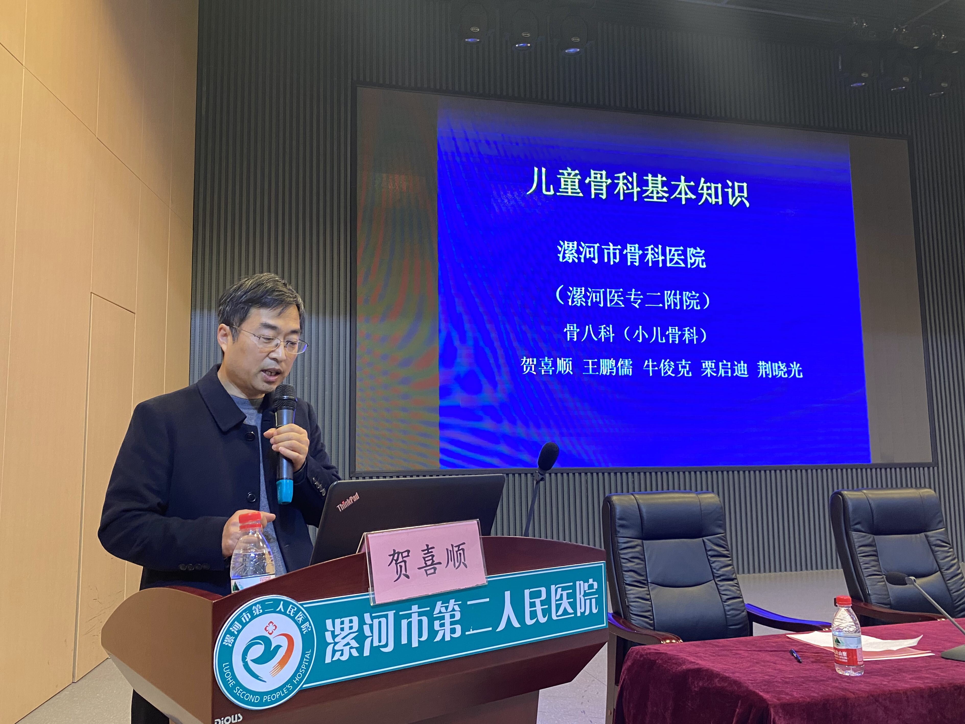 市骨科醫(yī)院小兒骨科主任賀喜順主任通過(guò) 《小兒骨科的基本知識(shí)》的授課講述了兒童骨骼的發(fā)育特點(diǎn),向大家詳細(xì)說(shuō)明了小兒骨科和成人骨科的異同。