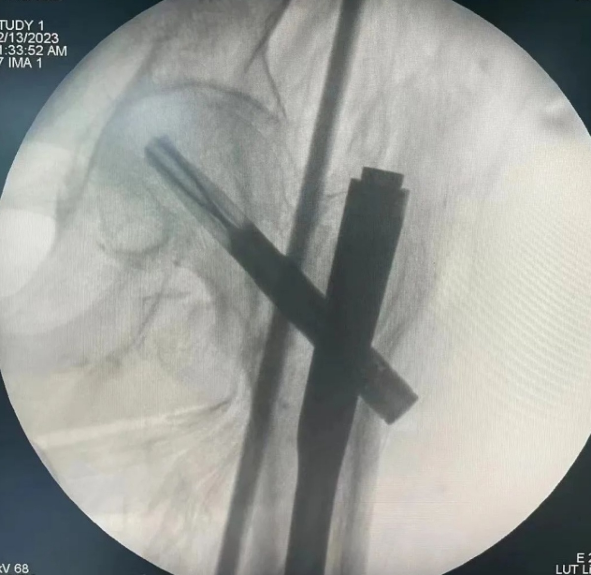 患者入室后,超聲引導(dǎo)下橈動脈穿刺置管實(shí)時監(jiān)測血壓,方便術(shù)中維持循環(huán)穩(wěn)定。麻醉科團(tuán)隊(duì)為患者順利施行超聲引導(dǎo)下左側(cè)高位髂筋膜阻滯,減少椎管內(nèi)麻醉時側(cè)身擺體位的疼痛。該患者腰椎退行病變及骨質(zhì)增生嚴(yán)重,椎管內(nèi)麻醉穿刺困難,麻醉科團(tuán)隊(duì)運(yùn)用超聲引導(dǎo)下椎管內(nèi)穿刺技術(shù)尋找合適的路徑,做到一針到位。在骨五科、手術(shù)室、麻醉科等科室醫(yī)護(hù)團(tuán)隊(duì)的通力配合下,成功為老人完成手術(shù)。手術(shù)過程順利,患者無疼痛等不適,術(shù)后平安返回病房。