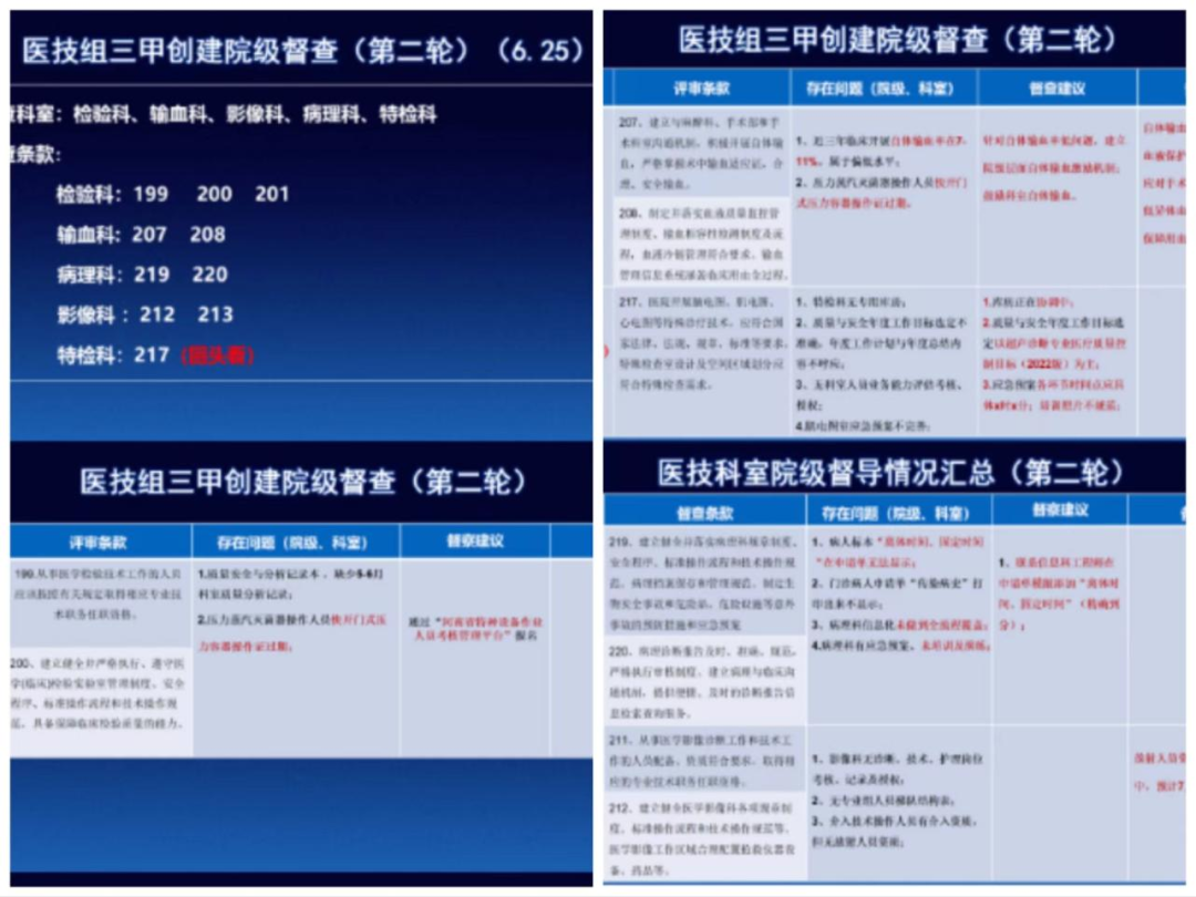 針對(duì)第一輪督查發(fā)現(xiàn)的問(wèn)題,每個(gè)科室針對(duì)問(wèn)題,積極完善。病理科在工作人員少、病理實(shí)驗(yàn)室(院內(nèi)、學(xué)校實(shí)驗(yàn)室)需要重新改造的情況下,科室人員在負(fù)責(zé)人趙路的帶領(lǐng)下,加班加點(diǎn)制作、完善三甲創(chuàng)建相關(guān)資料。 影像科在三位主任的帶領(lǐng)下,發(fā)揮全科、全員優(yōu)勢(shì),每一項(xiàng)任務(wù)布置下去,責(zé)任到人,在規(guī)定時(shí)間內(nèi)按時(shí)完成。輸血科針對(duì)評(píng)審條款要求,結(jié)合輸血自身特點(diǎn),完善、優(yōu)化輸血管理體系文件,特別是制作的輸血科儀器臺(tái)賬,定點(diǎn)、定時(shí)、定人,更好實(shí)現(xiàn)了實(shí)驗(yàn)室儀器設(shè)備的管理、跟蹤,已作為儀器臺(tái)賬管理模版,在全院推廣使用。檢驗(yàn)科針對(duì)評(píng)審條款、依據(jù)iso15189實(shí)驗(yàn)室建設(shè)要求,與科室質(zhì)量與安全管理組成員 簽訂責(zé)任承諾書,形成“人人關(guān)注質(zhì)量安全,人人參與質(zhì)量安全”的良好氛圍。