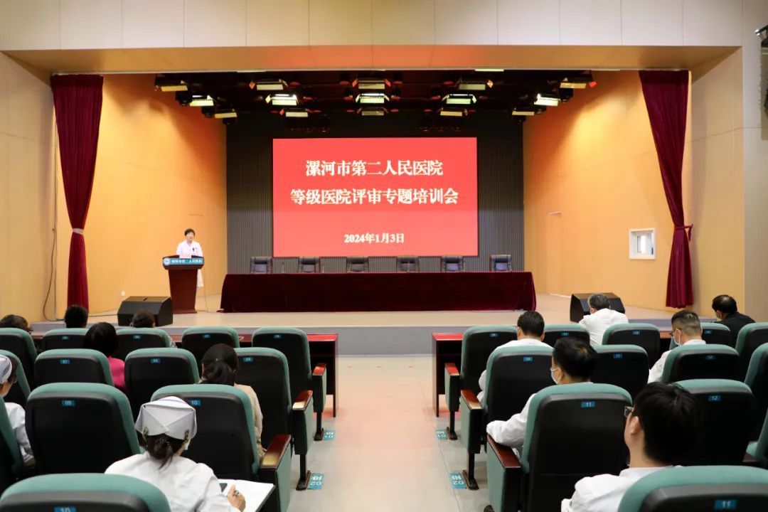 2024年1月3日—5日,市二院在學術報告廳召開為期3天的醫(yī)院等級評審培訓會,醫(yī)院領導班子、全院行政職能、臨床、醫(yī)技科主任、護士長,數(shù)據(jù)管理員近200人參加培訓。