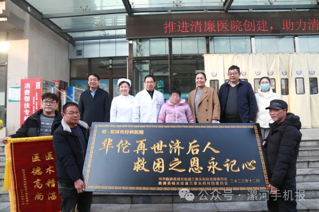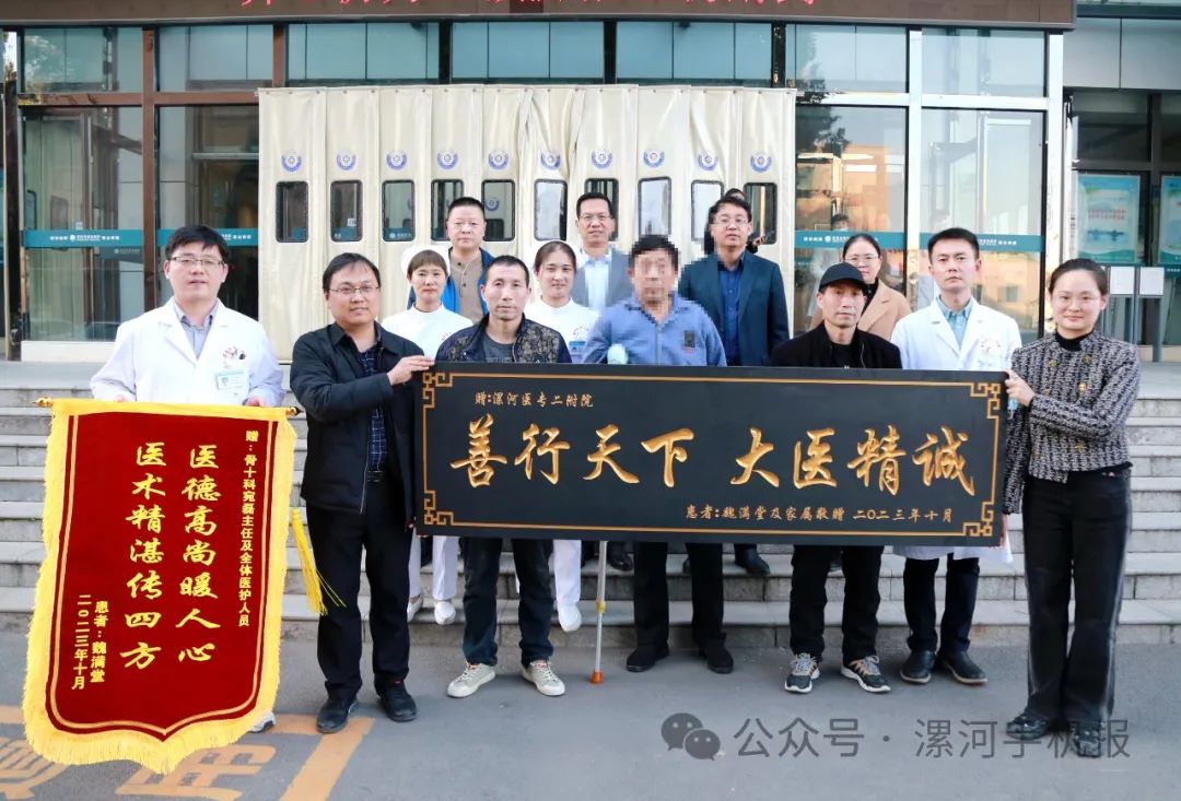 “華佗再世濟(jì)后人 救困之恩永記心”、“善行天下 大醫(yī)精誠(chéng)”、“醫(yī)德高尚暖人心 醫(yī)術(shù)精湛傳四方”……連日來,臨潁縣、舞陽縣、召陵區(qū)的多位患者將一面面匾額、錦旗送到漯河市骨科醫(yī)院(漯河醫(yī)專二附院)的醫(yī)務(wù)人員手中,感謝醫(yī)院對(duì)他們開展的醫(yī)療救助和悉心治療。