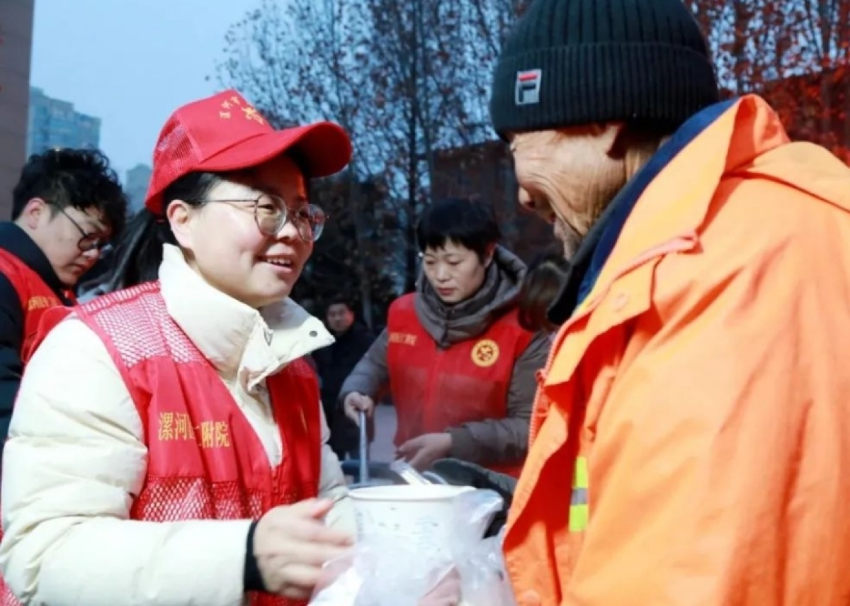 1000余碗臘八粥、600多個(gè)包子、10余斤咸菜......被悉數(shù)送出,前來領(lǐng)取愛心粥的不僅有患者及家屬,更有附近的環(huán)衛(wèi)工人和群眾。一碗碗愛心粥,不僅是暖手、暖胃,更是暖人、暖心。