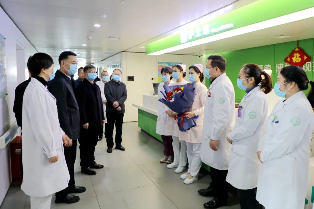 2月8日上午,新春佳節(jié)來(lái)臨之際,市衛(wèi)健委黨組成員、市紀(jì)委監(jiān)委派駐第二十一紀(jì)檢監(jiān)察組組長(zhǎng)朱黎明一行到市二院看望慰問(wèn)一線(xiàn)醫(yī)護(hù)人員,并送上節(jié)日的問(wèn)候。黨委書(shū)記魏松、院長(zhǎng)王瑾攜領(lǐng)導(dǎo)班子及相關(guān)職能部門(mén)負(fù)責(zé)人陪同慰問(wèn)。