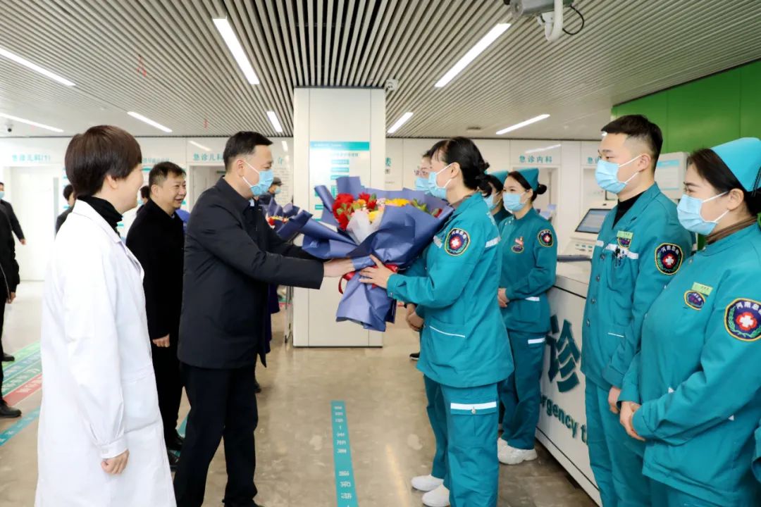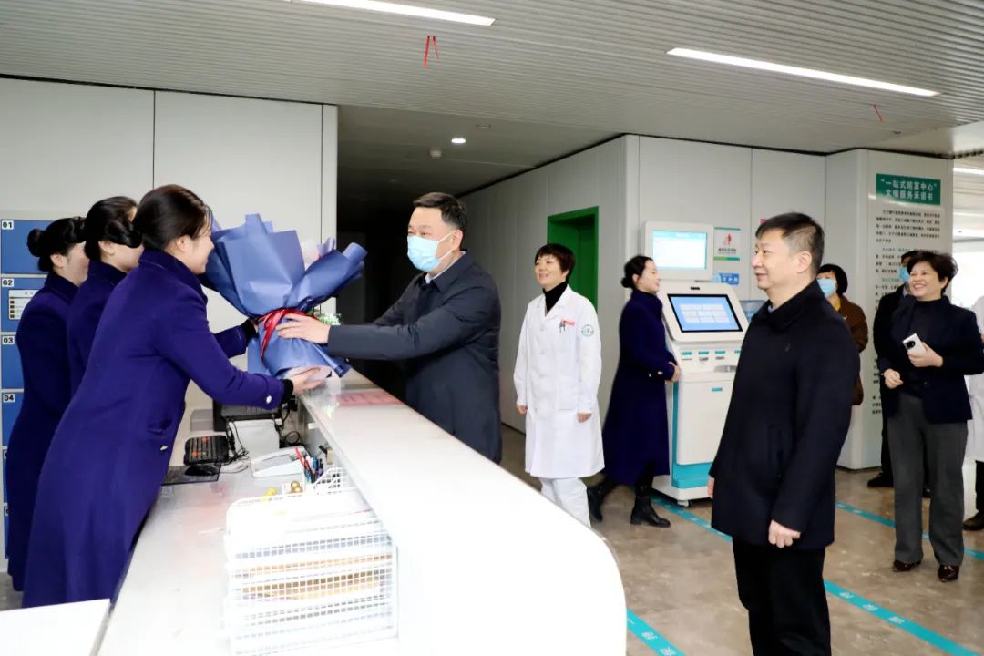 朱黎明一行先后到急診科、病人服務(wù)中心、影像科、皮膚科、中醫(yī)科、小兒心血管神經(jīng)血液科,小兒呼吸內(nèi)科看望慰問(wèn)醫(yī)護(hù)人員,他表示,廣大醫(yī)護(hù)人員始終奮戰(zhàn)在醫(yī)療救治的最前線(xiàn),承擔(dān)著光榮而艱巨的職責(zé)使命,為護(hù)佑全市人民健康提供了堅(jiān)實(shí)保障,在新春佳節(jié)到來(lái)之際,謹(jǐn)代表市衛(wèi)健委向辛勤奉獻(xiàn)的市二院全體醫(yī)護(hù)人員表達(dá)誠(chéng)摯的感謝和新年的祝福。