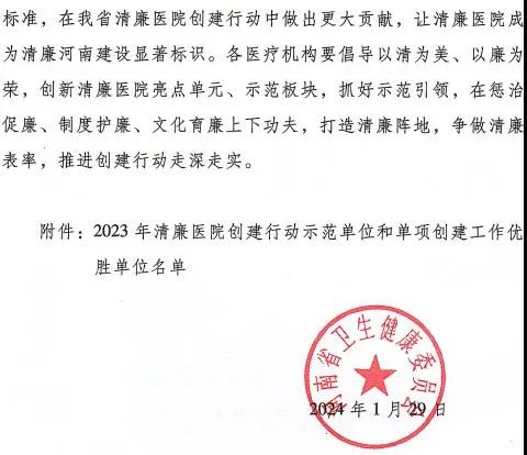 創(chuàng)建清廉醫(yī)院 守護(hù)人民健康——漯河醫(yī)專(zhuān)二附院被授予2023年省級(jí)清廉醫(yī)院創(chuàng)建行動(dòng)示范單位