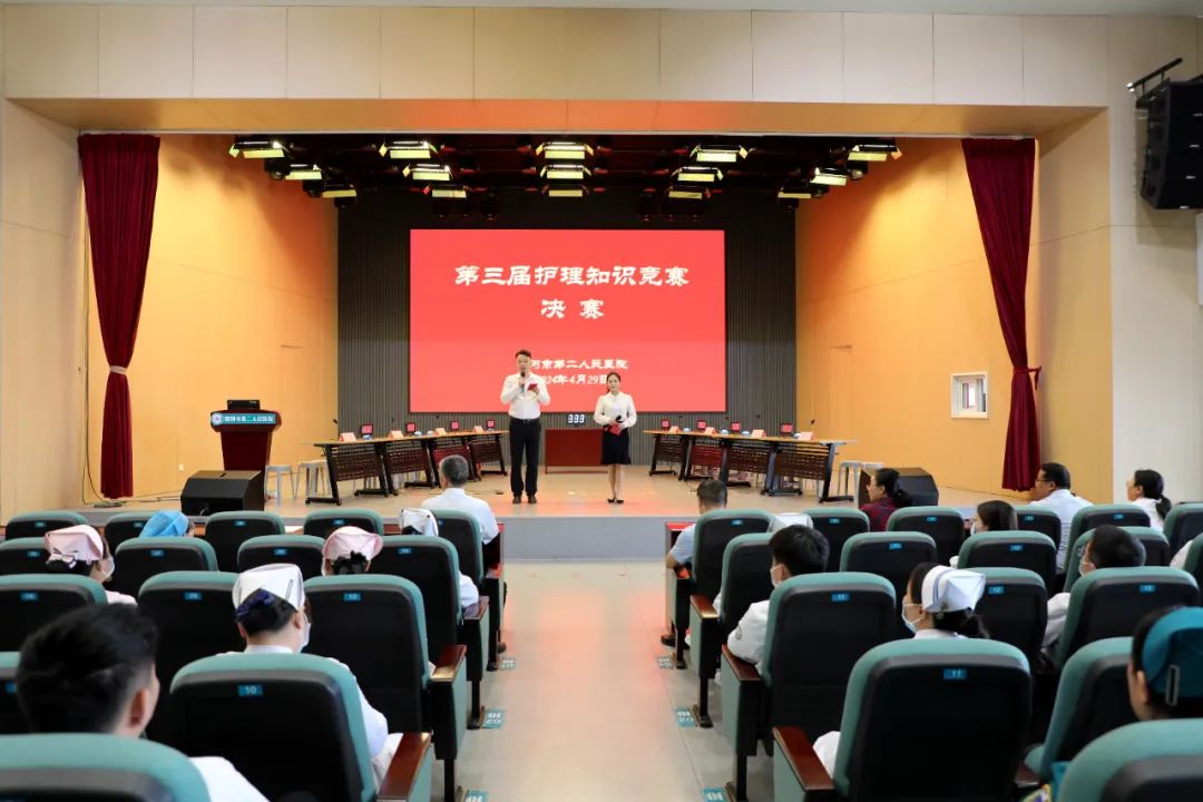為進(jìn)一步提高護(hù)理隊(duì)伍的專業(yè)能力和業(yè)務(wù)素質(zhì),營造“比學(xué)趕超”的濃厚氛圍。4月2 8日下午,在5.12國際護(hù)士節(jié)來臨之際,市二院在十二樓學(xué)術(shù)報(bào)告廳舉行第三屆護(hù)理知識競賽決賽。黨委書記魏松及領(lǐng)導(dǎo)班子成員、部分職能科長和臨床科室護(hù)理人員代表100余人參加此次競賽活動。