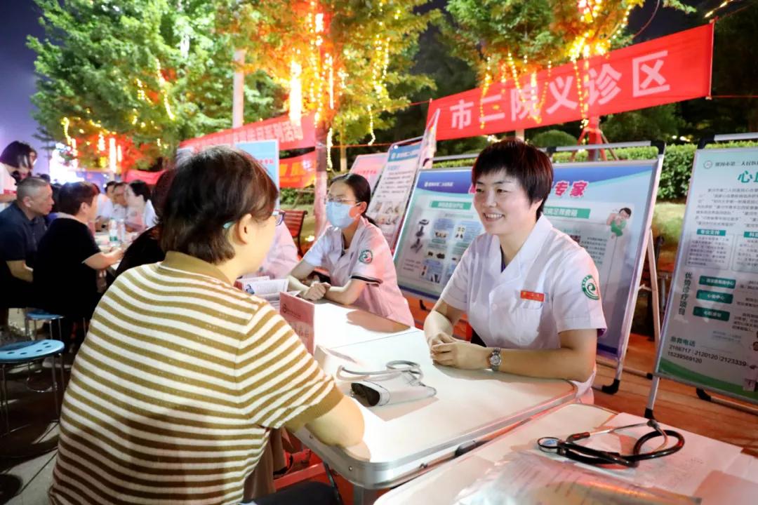 “市二院舉辦這個活動好啊,平常在醫(yī)院一號難求的專家來到了身邊,還是免費義診!今晚上我體驗了葫蘆灸、喝了養(yǎng)生茶,還做了個甲狀腺彩超,真是來著了!市二院舉辦這個活動真好!”一位前來紅楓廣場納涼的劉大媽高興地說道。為了鼓勵更多市民積極了解疾病防治知識,醫(yī)院還發(fā)放健康宣教資料、播放健康宣教視頻等多種形式,普及常見病防治知識,讓市民們對健康有更深入的了解和識。