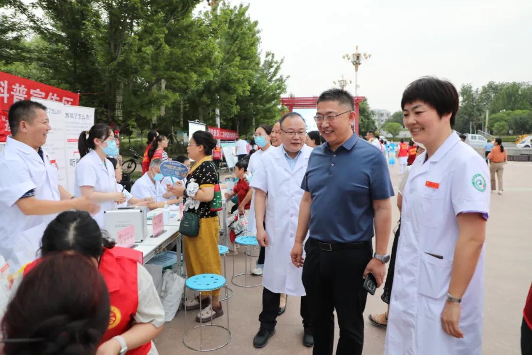 5月31日晚7時,根據(jù)市衛(wèi)健委統(tǒng)一部署,市二院在紅楓廣場開展了“漯河市衛(wèi)生健康青年人才發(fā)展聯(lián)盟大型義診活動”,在炎炎夏日為廣大市民送去陣陣清涼。市衛(wèi)健委黨組副書記、副主任王向良帶領市衛(wèi)健委人事科科長王滿華、醫(yī)政科長王彩紅等蒞臨現(xiàn)場并給予指導。