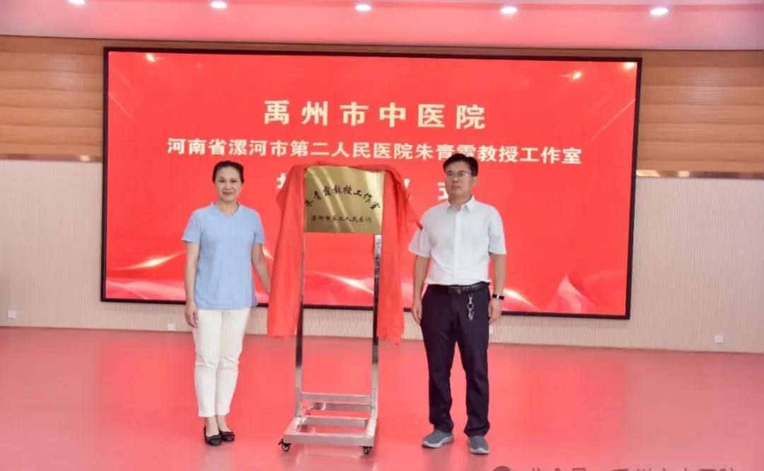 禹州市衛(wèi)健委黨組成員、副主任郭占軍與市二院中醫(yī)針灸科主任朱青霞教授共同為朱青霞教授名醫(yī)工作室揭牌。