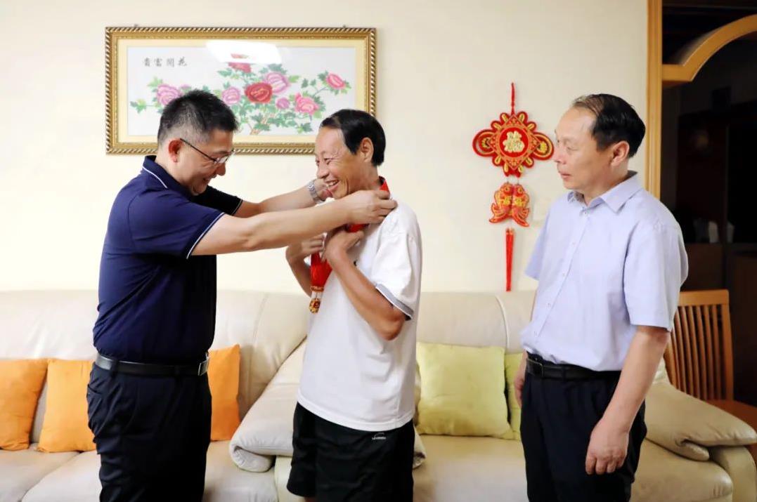 慰問(wèn)過(guò)程中,王向良同志為謝學(xué)政同志戴上沉甸甸的紀(jì)念章,關(guān)切詢問(wèn)謝學(xué)政同志及其家人的生活和身體狀況。孟德陽(yáng)同志受院黨委的委托,向謝學(xué)政同志為醫(yī)院的發(fā)展所做出的辛勤付出、無(wú)私奉獻(xiàn)表達(dá)了衷心感謝,叮囑他保重身體,今后有什么困難要及時(shí)告知醫(yī)院,醫(yī)院是他永遠(yuǎn)的后盾,并希望他一如既往地關(guān)心醫(yī)院工作,為醫(yī)院高質(zhì)量發(fā)展積極建言獻(xiàn)策。