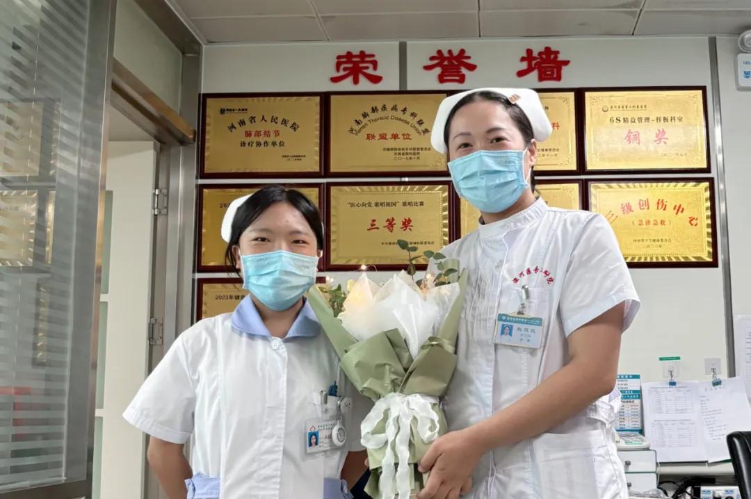 “趙老師,馬上就要轉(zhuǎn)科,真舍不得你,舍不得胸外科”,胸外科實習(xí)生龐晶晶依依不舍地對帶教老師趙蕊蕊說道,更是送上鮮花表達(dá)感謝。