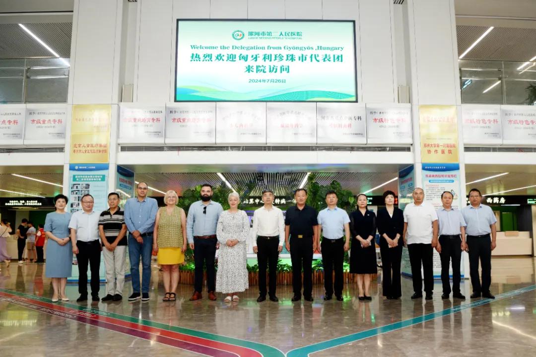 朋自遠方來,攜手話合作。7月26日,漯河市友好城市——匈牙利珍珠市議會主席嘉柏瑞拉·森、聯(lián)絡處主任托馬斯·皮福科、國際關系處主任拉斯洛·恰爾達斯、杜比茨酒莊總經(jīng)理喬治·杜奈組成的珍珠市代表團,蒞臨漯河市第二人民醫(yī)院,交流醫(yī)療合作事宜。匈牙利河南總商會會長白勇、副會長應建輝,市衛(wèi)健委黨組書記、主任宋耀生,市委外辦副主任楊興濤,市衛(wèi)健委醫(yī)政科長王彩紅參加活動,市二院黨委書記魏松、院長王瑾攜班子成員及相關職能部門負責同志全程陪同。