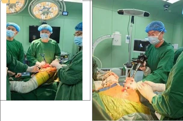 (李奎院長帶領(lǐng)智能微創(chuàng)骨科團(tuán)隊進(jìn)行手術(shù))