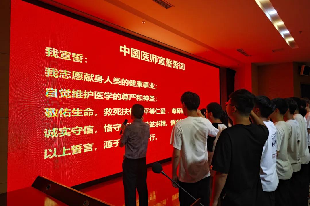 全科基地主任劉國鋒帶領(lǐng)全體學(xué)員進行了莊嚴(yán)宣誓,《中國醫(yī)師誓言》的錚錚誓詞響徹會議室上空,回蕩在每個師生心間,師生在此經(jīng)歷了一次職業(yè)教育洗禮。