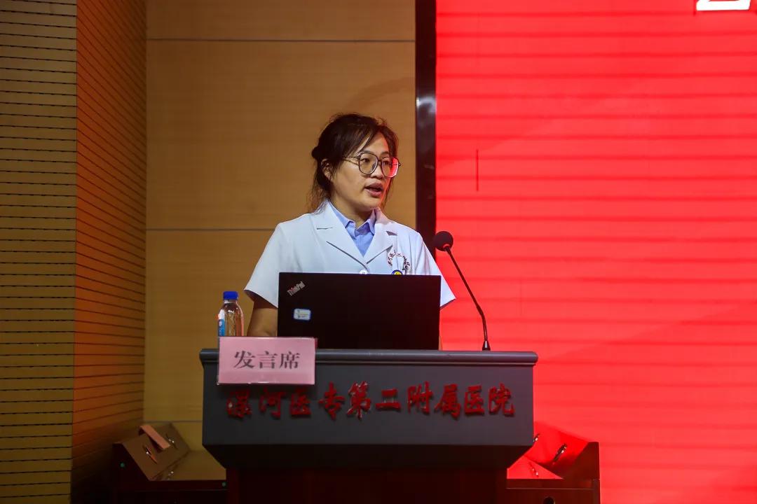 市衛(wèi)健委副主任于宏代表市衛(wèi)健委對漯河市助理全科醫(yī)生培訓(xùn)概況及培訓(xùn)基地工作情況做了介紹,對漯河醫(yī)專二附院近年來取得的優(yōu)異成績表示祝賀,同時對培訓(xùn)工作提出四點要求:一是狠抓過程管理、全面提升培訓(xùn)質(zhì)量;二是優(yōu)化課程設(shè)置,注重學(xué)員培訓(xùn)實效;三是優(yōu)化師資隊伍,健全教學(xué)工作機制;四是時刻保持警醒,牢牢把住安全關(guān)口。最后,對培訓(xùn)基地和培訓(xùn)學(xué)員表達(dá)了美好祝愿,希望全體師生們在推動基層衛(wèi)生健康事業(yè)發(fā)展的征途上實現(xiàn)自我價值。