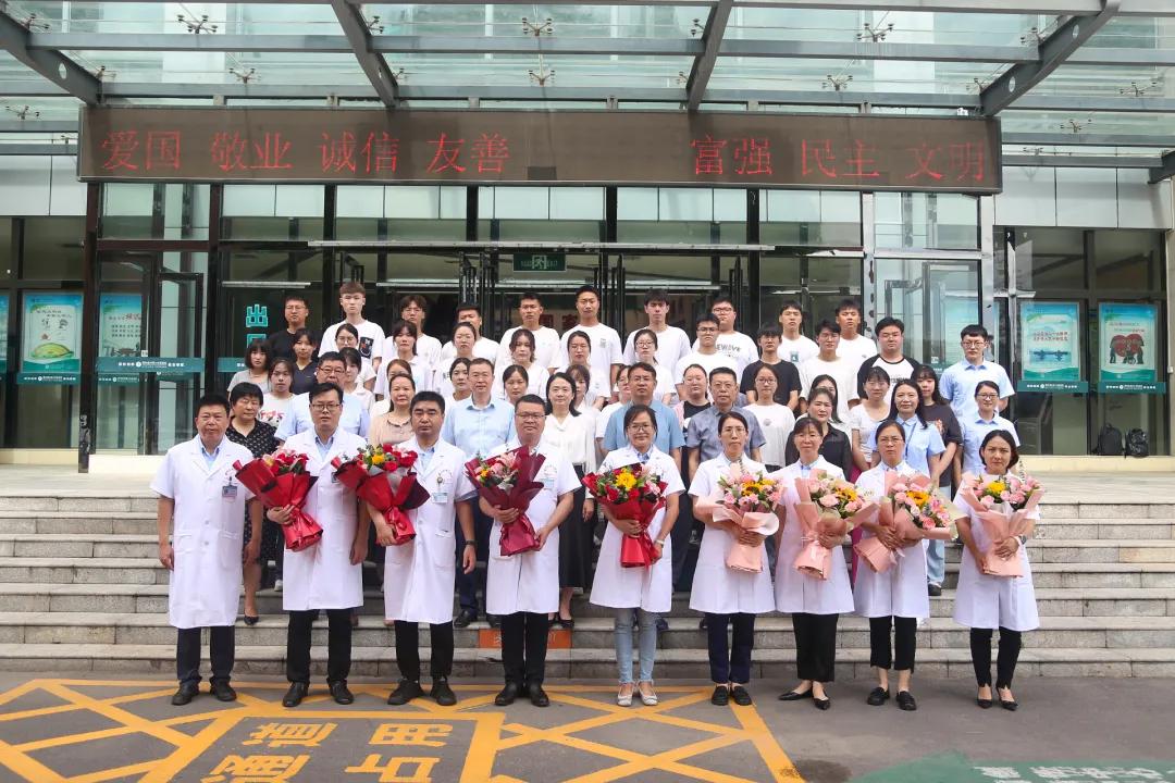 典禮現(xiàn)場還舉行了拜師儀式,來自臨床專業(yè)的8位導(dǎo)師代表向?qū)W員代表授予白大衣和聽診器,學(xué)員代表向?qū)煷慝I(xiàn)花。