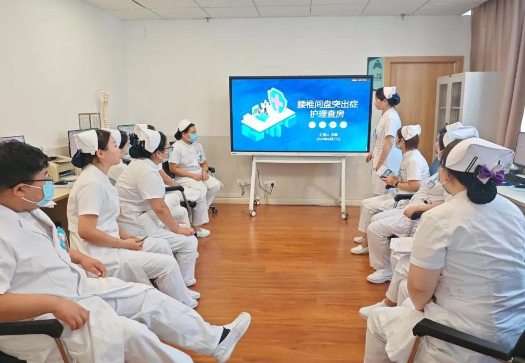 在進(jìn)行護(hù)理查房前,首先由責(zé)任護(hù)士王露介紹患者的病史及疾病相關(guān)知識(shí)與治療,針對(duì)該患者的護(hù)理重點(diǎn)制定專業(yè)、個(gè)性化的護(hù)理管理情況,隨后責(zé)任護(hù)士帶領(lǐng)大家進(jìn)行床旁查房,護(hù)士長(zhǎng)關(guān)切的詢問(wèn)了患者病情狀況,了解是否存在未解決的護(hù)理問(wèn)題,并從患者實(shí)際情況出發(fā),制定出具體的護(hù)理措施。此外,護(hù)士長(zhǎng)還交代患者術(shù)后注意事項(xiàng),叮囑患者術(shù)后如何規(guī)范正確進(jìn)行腰椎術(shù)后的功能鍛煉。