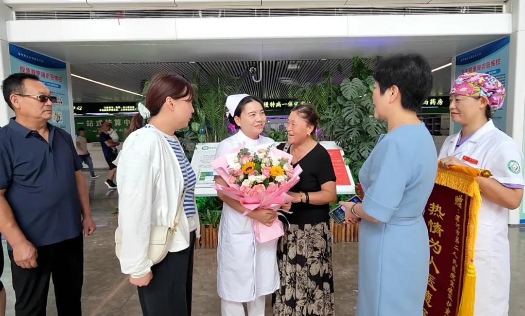 8月23日,來自鞏義的患者家屬一行四人攜鮮花、錦旗、禮品,驅(qū)車200公里到市二院,找到該院副院長劉橋和重癥醫(yī)學(xué)科護士長蔡新華直接表達來意:我們要給貴院重癥醫(yī)學(xué)科護士王美娜“送禮”,并希望院領(lǐng)導(dǎo)一定要好好表揚她:“要是沒有她,我們都不敢想會有啥后果!”