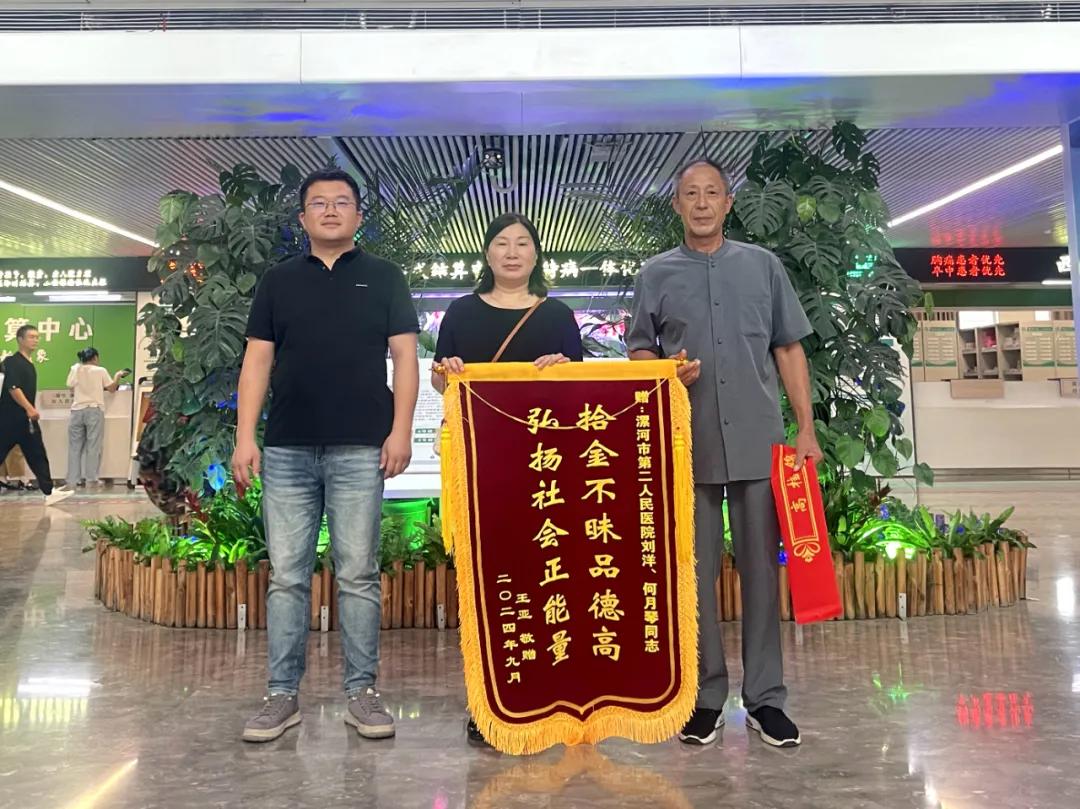 后來,經(jīng)醫(yī)院相關工作人員,根據(jù)錢包里面的信息,多方渠道尋找,最終與失主王先生取得了聯(lián)系,核對確認身份后,將錢包物歸原主。失主連聲感謝,對醫(yī)務人員拾金不昧的精神連連點贊,并特意送來寫有拾金不昧品德高,弘揚社會正能量的錦旗一面。