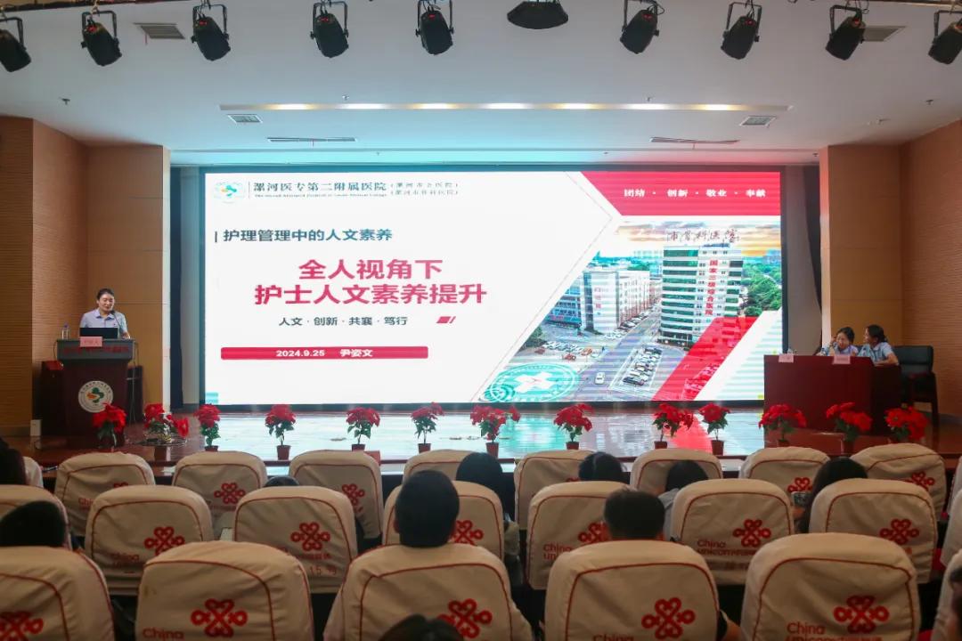 五官科護士長尹姿文講授《全人視角下--護士人文素養(yǎng)提升》,通過工作中的感人事例,強調(diào)全人護理理念,探討護士如何提升人文素養(yǎng),包括倫理道德、溝通技巧、同理心培養(yǎng)等,旨在培養(yǎng)護士成為患者身心健康的全面關懷者。