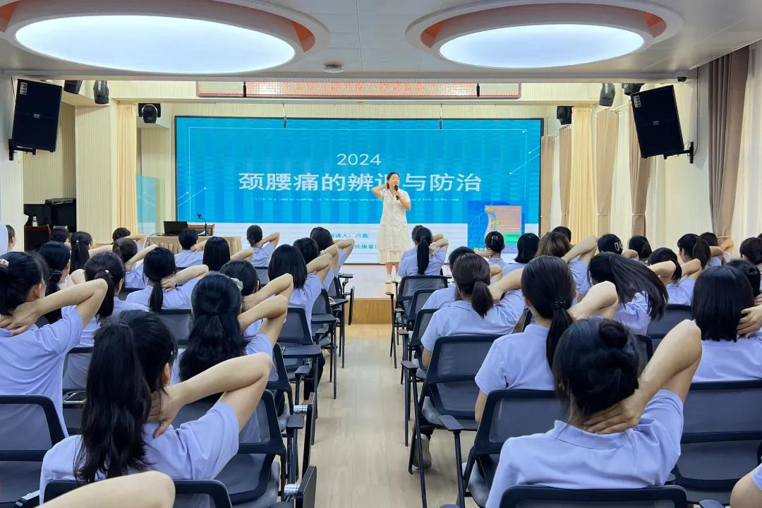 培訓(xùn)現(xiàn)場,市中醫(yī)院宣講團(tuán)成員康復(fù)科副主任盧鑫用通俗易懂的語言,通過PPT,圖文并茂、深入淺出地從頸椎病的類型、癥狀、中醫(yī)治療和預(yù)防等方面做了詳細(xì)的講解,讓大家了解在日常生活中如何預(yù)防頸椎病和需要注意的事項(xiàng)。同時囑咐大家在課間休息時一定要外出活動一下肢體。
