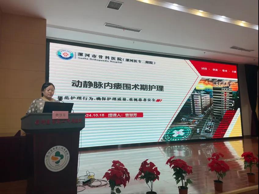 精心的圍手術(shù)期護(hù)理,可以減少手術(shù)并發(fā)癥,提高手術(shù)成功率,曹慧芳主任以《動靜脈內(nèi)瘺圍術(shù)期護(hù)理》為題詳細(xì)闡述了患者評估與準(zhǔn)備、手術(shù)過程與護(hù)理配合、術(shù)后護(hù)理與觀察、藥物治療與護(hù)理、心理護(hù)理等內(nèi)容。