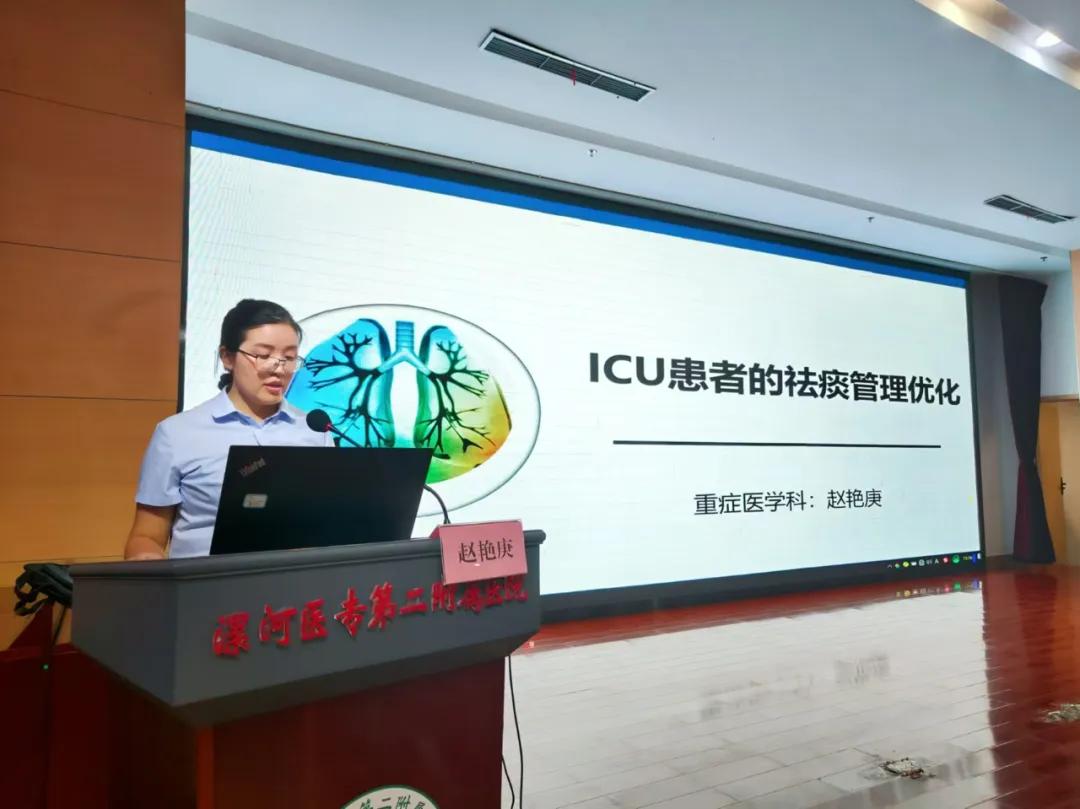 漯河市骨科醫(yī)院重癥醫(yī)學科護士長趙艷庚以《ICU患者的祛痰管理優(yōu)化》為課題。為大家詳細講解了ICU患者祛痰管理的重要性,痰液的產(chǎn)生機制、影響因素及祛痰管理實施辦法,引發(fā)對重癥肺炎患者呼吸道管理的更廣泛關(guān)注和重視,激勵醫(yī)護人員不斷學習和更新知識,提升專業(yè)技能,為患者提供更好的醫(yī)療服務(wù)。