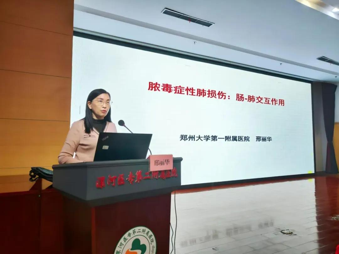 本次會議邀請鄭州大學第一附屬醫(yī)院重癥醫(yī)學部副主任、RICU主任邢麗華教授為大家講授了《膿毒癥性肺損傷:腸-肺交互作用》,邢教授以深入淺出、幽默詼諧的授課方式,講述了病原微生物在人體內(nèi)的來龍去脈,讓我們深刻認識到肺部感染不僅需要上呼吸道管理,更需要腸道管理,為與會者帶來了全新的視角和思路。