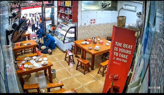 10 月 17 日中午 12 時 30 分,市二院急診科警報鈴聲響起,馬路街有一位中年男性就餐時突然暈倒、昏迷不醒、生命垂危,急需緊急救治。接到出車命令后,120指揮中心及急診科醫(yī)生王磊與現(xiàn)場人員保持持續(xù)通話,遠程指導(dǎo),為患者進行心肺復(fù)蘇。與此同時,急救人員迅速行動,僅僅 3 分鐘就趕到了現(xiàn)場,快速評估后發(fā)現(xiàn)患者頸動脈搏動消失,無自主呼吸。