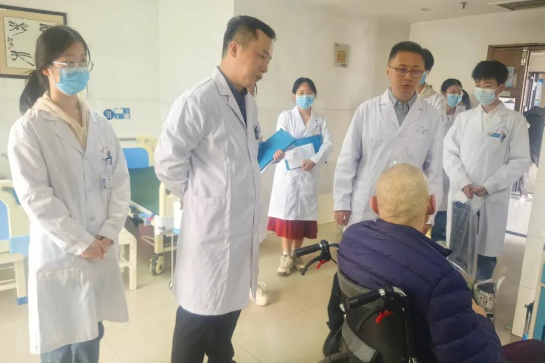 在業(yè)務(wù)查房中,胡彥輝教授通過查閱病歷資料、查體、詢問病史、輔檢報告等,為主管醫(yī)生講解了其對一些疑難病的診療思路、病情觀察與治療要點,并指導(dǎo)制定了疑難病患的診療方案。