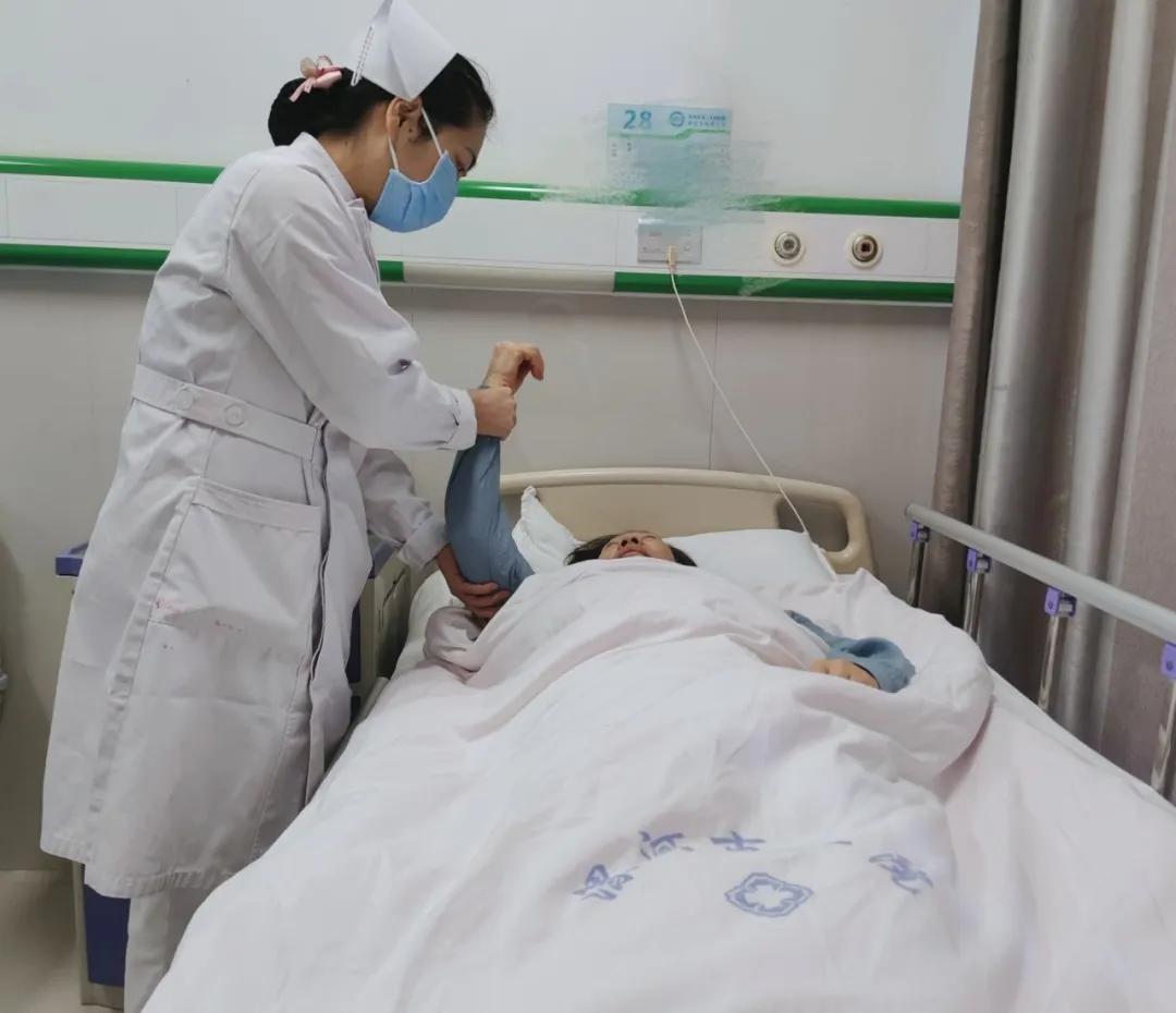 偏癱患者肢體需擺放功能位,防止肢體痙攣。為此,科室護(hù)理團(tuán)隊(duì)進(jìn)行“提高良肢位擺放的準(zhǔn)確率”的質(zhì)量改進(jìn),指導(dǎo)和幫助患者家屬擺放良肢位,取得了良好的效果。同時(shí)責(zé)任護(hù)士針對(duì)患者疾病特點(diǎn),制定了個(gè)性化的功能鍛煉計(jì)劃,如良肢位擺放、踝泵運(yùn)動(dòng)、吞咽鍛煉、攝食訓(xùn)練、言語(yǔ)鍛煉、認(rèn)知訓(xùn)練、肢體氣壓等等。
