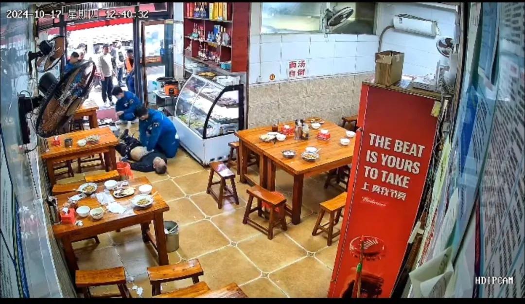 10 月 17 日中午 12 時(shí) 30 分,市二院急診科警報(bào)鈴聲響起,馬路街有一位中年男性就餐時(shí)突然暈倒、昏迷不醒、生命垂危,急需緊急救治。接到出車命令后,120指揮中心及急診科醫(yī)生王磊與現(xiàn)場(chǎng)人員保持持續(xù)通話,遠(yuǎn)程指導(dǎo),為患者進(jìn)行心肺復(fù)蘇。與此同時(shí),急救人員迅速行動(dòng),僅僅 3 分鐘就趕到了現(xiàn)場(chǎng),快速評(píng)估后發(fā)現(xiàn)患者頸動(dòng)脈搏動(dòng)消失,無(wú)自主呼吸。