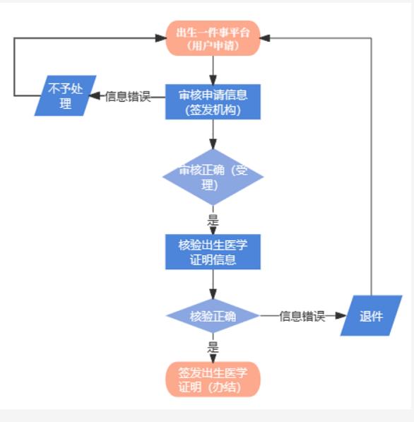 《出生醫(yī)學證明》申請及簽發(fā)流程圖