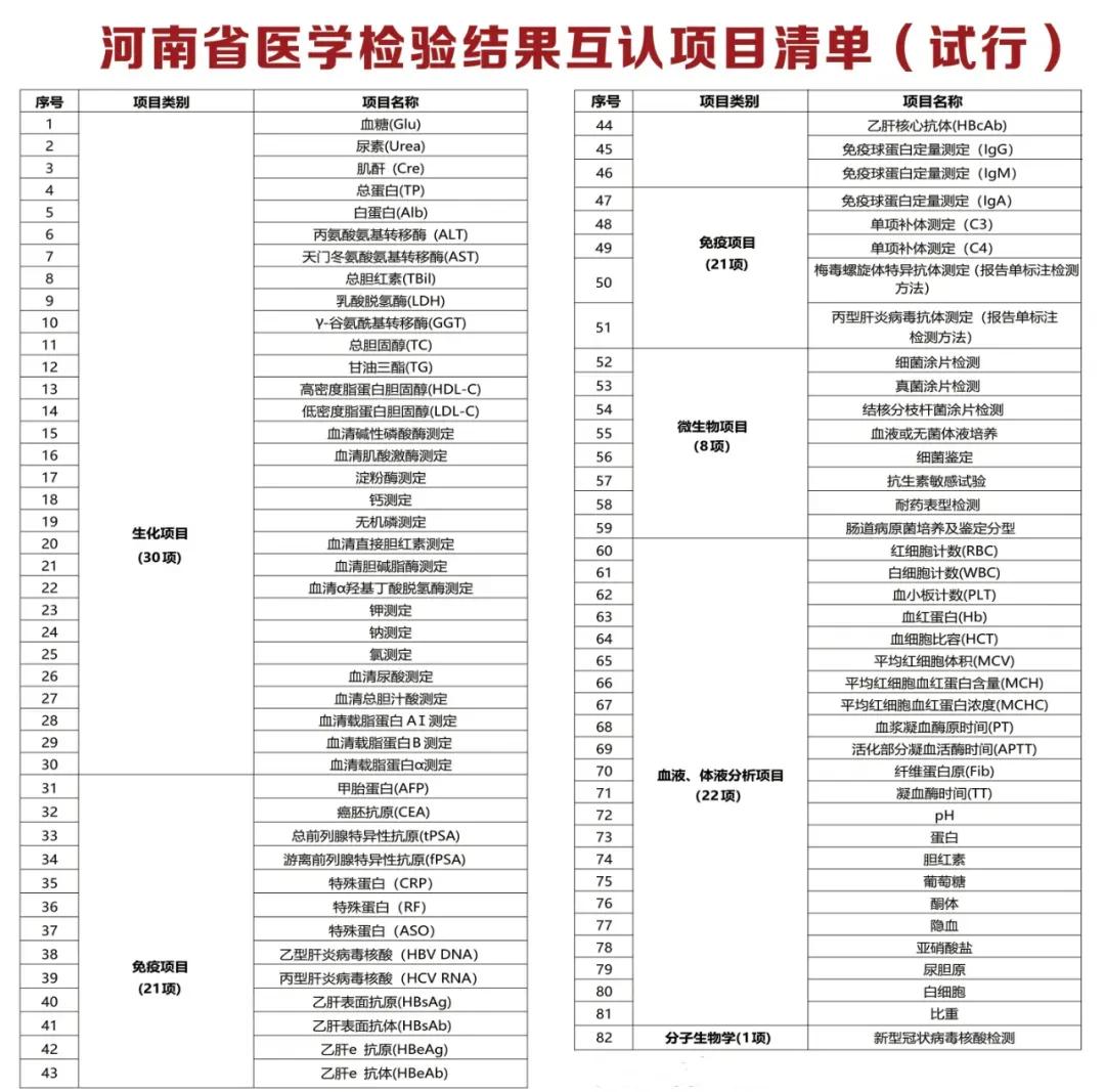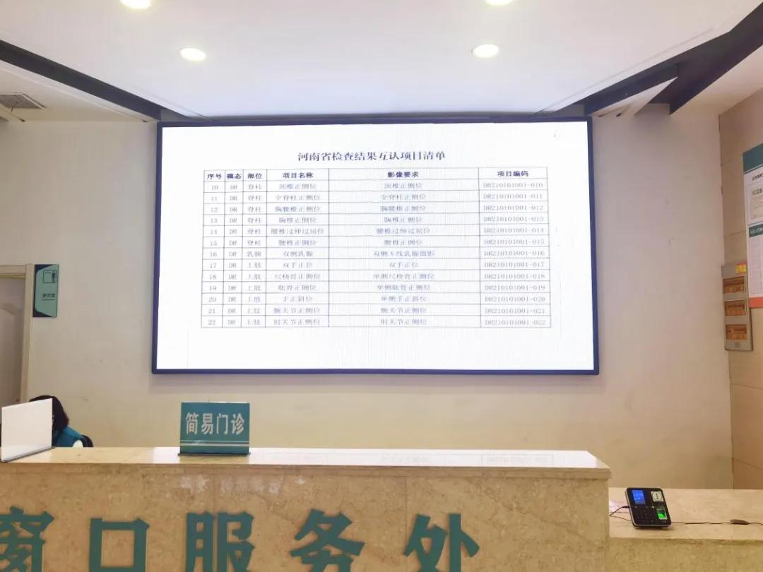 在門診大廳、檢驗大廳、簡易門診等就診區(qū)域和位點擺放了“河南省首批檢查結果互認項目清單”“河南省醫(yī)學檢驗結果互認項目清單”等詳細內容,持續(xù)加強宣教和講解,切實把好事辦好、實事辦實。