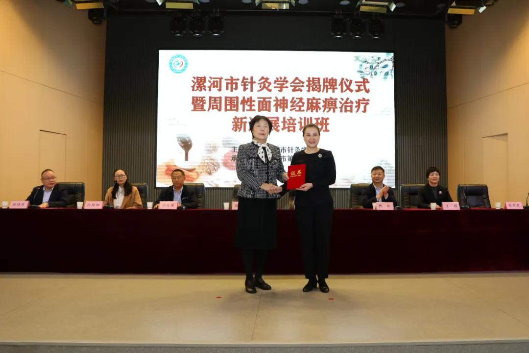隨后,各參會領導向漯河市針灸學會會長、副會長頒發(fā)了證書。