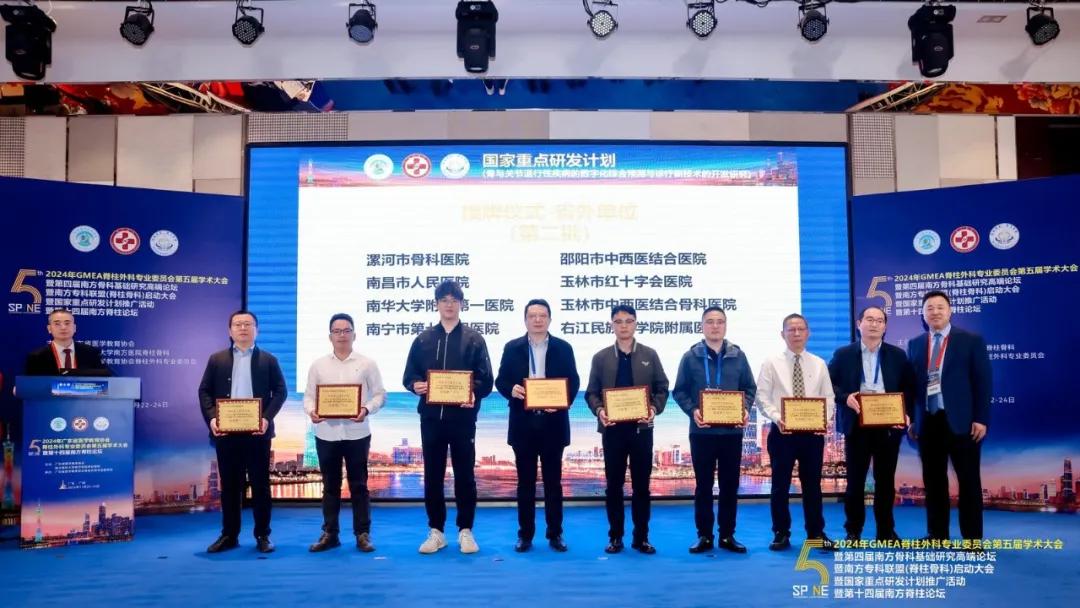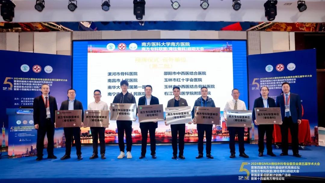 11月22日—24日,由廣東省醫(yī)學教育協(xié)會、南方醫(yī)科大學南方醫(yī)院脊柱骨科聯(lián)合主辦,廣東省醫(yī)學教育協(xié)會脊柱外科專業(yè)委員會承辦的“2024年GMEA脊柱外科專業(yè)委員會第五屆學術大會”在廣東廣州成功舉行。在南方??坡?lián)盟(脊柱骨科)啟動大會暨國家重點研發(fā)計劃推廣活動上,漯河市骨科醫(yī)院(漯河醫(yī)專二附院、漯河市立醫(yī)院)榮獲“國家重點研發(fā)計劃-骨與關節(jié)退行性疾病的數字化綜合預測與診療新技術的開發(fā)研究課題推廣單位”與“南方專科聯(lián)盟單位(脊柱外科)”雙項授牌!