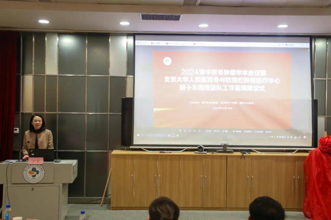 市衛(wèi)健委副主任于宏在致辭中代表市衛(wèi)健委向出席會(huì)議的各位專家教授表示熱烈的歡迎。她指出,骨腫瘤學(xué)科雖然在骨科領(lǐng)域中相對(duì)小眾,涉及的多為罕見病或少見病,發(fā)病率較低,病理類型復(fù)雜,治療難度大,但其在醫(yī)學(xué)中的重要性不容忽視,攻克骨腫瘤領(lǐng)域,依然任重而道遠(yuǎn)。她希望以北京大學(xué)人民醫(yī)院湯小東教授團(tuán)隊(duì)工作室揭牌為契機(jī),匯聚眾多業(yè)內(nèi)精英,搭建廣泛交流、深度研討的平臺(tái),共同推動(dòng)豫中南地區(qū)在骨腫瘤相關(guān)領(lǐng)域的診療水平進(jìn)一步提升。