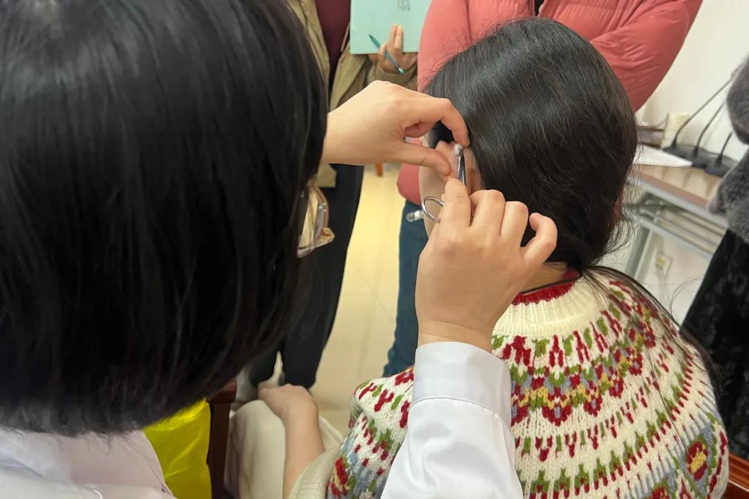 講座結束,付曉芳醫(yī)生通過“望、聞、問、切”中醫(yī)四診了解了大家的身體健康狀況,為大家提供個性化的中醫(yī)指導和預防保健養(yǎng)生知識。針灸科護士長張瑞根據(jù)大家個體特點進行辨證施護,為大家進行耳穴壓豆、艾灸、刮痧等中醫(yī)特色療法體驗,受到大家一致好評。