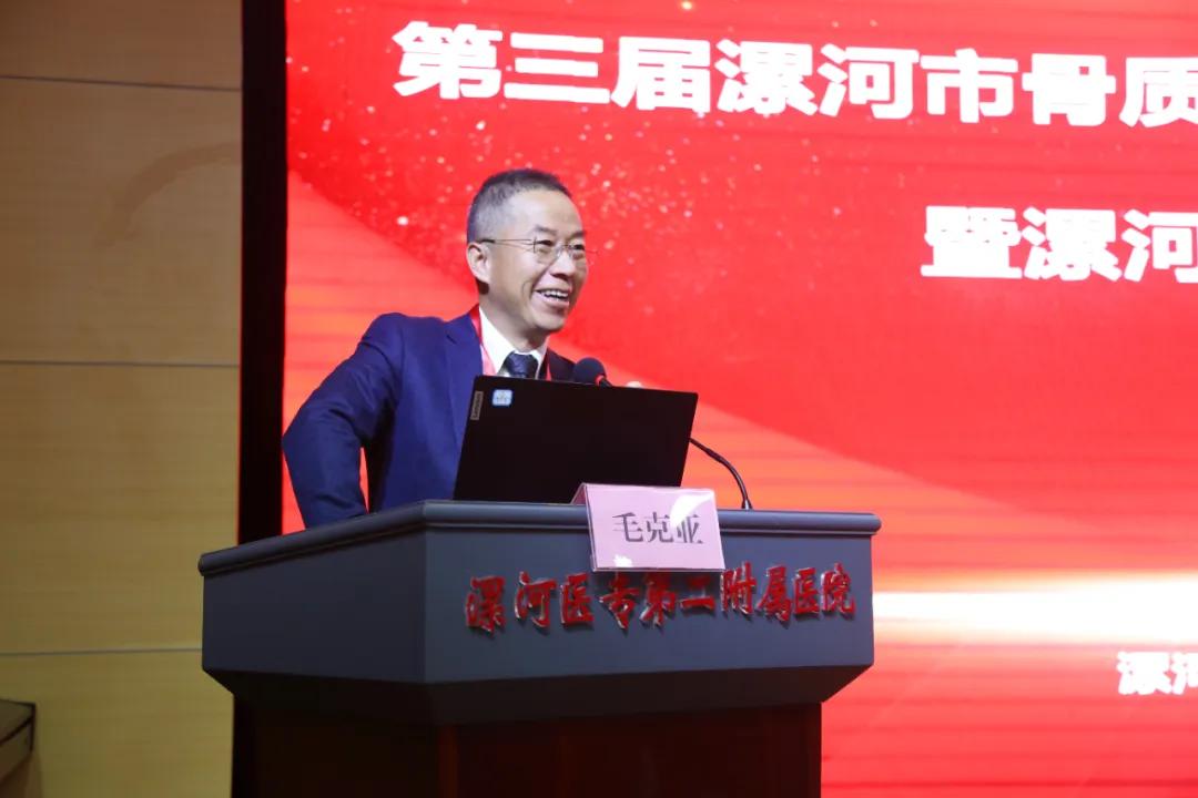中國(guó)人民解放軍總醫(yī)院毛克亞教授首先對(duì)漯河市骨科醫(yī)院的邀請(qǐng)表示感謝,并表示本次骨質(zhì)疏松和骨礦鹽疾病分會(huì)學(xué)術(shù)年會(huì)為業(yè)內(nèi)同仁搭建了一個(gè)互相學(xué)習(xí)、交流互鑒的良好平臺(tái),為豫中南地區(qū)的骨質(zhì)疏松、骨礦鹽疾病與骨科康復(fù)的發(fā)展做出了巨大的貢獻(xiàn)。他表示會(huì)盡己所能,與各位同仁分享專業(yè)前沿動(dòng)態(tài),增強(qiáng)學(xué)術(shù)交流,也預(yù)祝本次大會(huì)取得圓滿成功。
